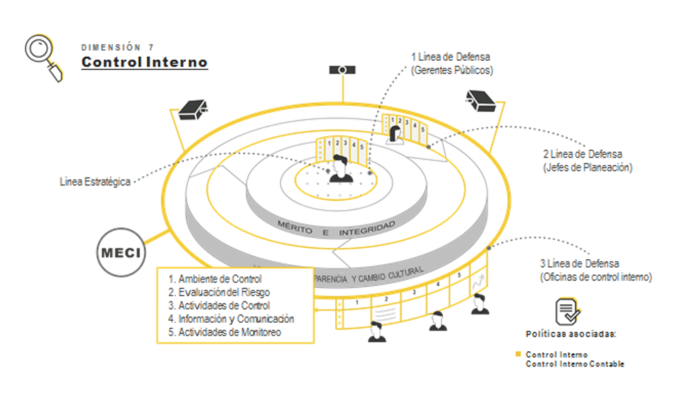 El Modelo Estándar de Control Interno (MECI) que se establece para las entidades del Estado proporciona una estructura para el control a la estrategia, la gestión y la evaluación en las entidades del Estado, cuyo propósito es orientarlas hacia el cumplimiento de sus objetivos institucionales y la contribución de estos a los fines esenciales del Estado.