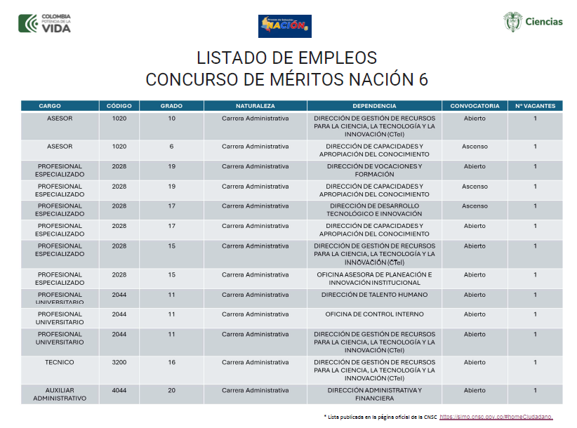 En esta página encontrará la información relacionada con los concursos para proveer los cargos de carrera administrativa del Ministerio de Ciencia, Tecnología e Innovación.
