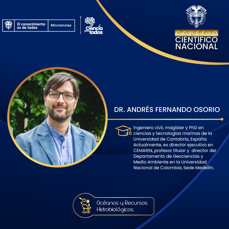5. Andrés Fernando Osorio, investigador para el foco de conocimiento océanos y recursos hidrobiológicos.