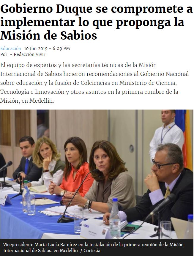 Inicio » Sala de prensa » El Espectador: Gobierno Duque se compromete a implementar lo que proponga la Misión de Sabios El Espectador: Gobierno Duque se compromete a implementar lo que proponga la Misión de Sabios