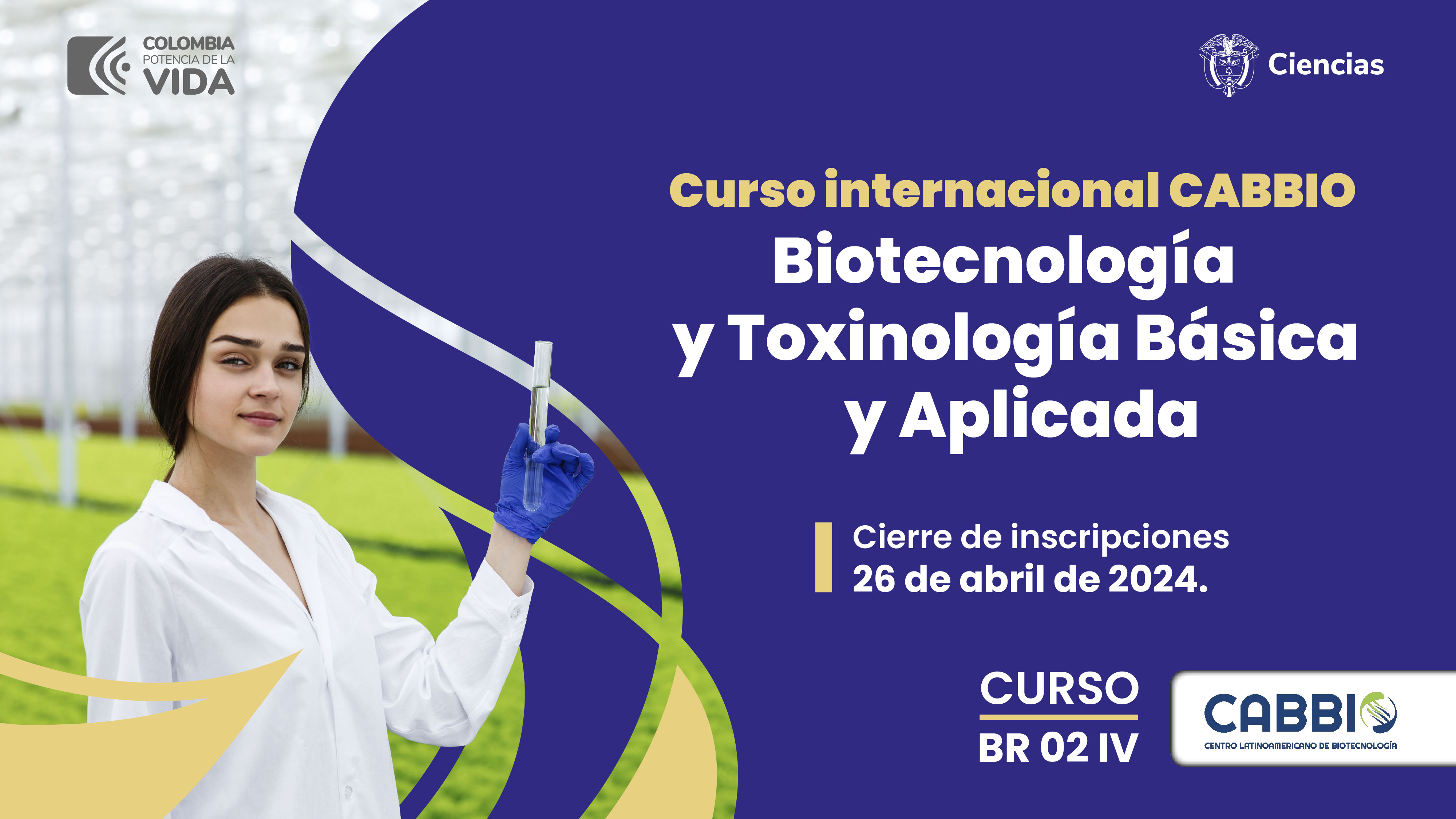 Bogotá, D.C Abril 3 de 2024 MinCiencias en colaboración con el Centro Latinoamericano de Biotecnología – CABBIO, anunciaron la apertura de un nuevo curso con 20 cupos disponibles para colombianos que quieran participar en el “BR02 IV Curso Internacional de Biotecnología y Toxinología Básica y Aplicada (Amo Biotecnología & Toxinología): Bioprospección de Toxinas Útiles para la Salud y la Bioeconomía”.