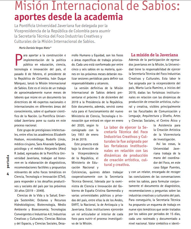 Hoy en la Javariana - Misión Internacional de Sabios: aportes desde la academia
