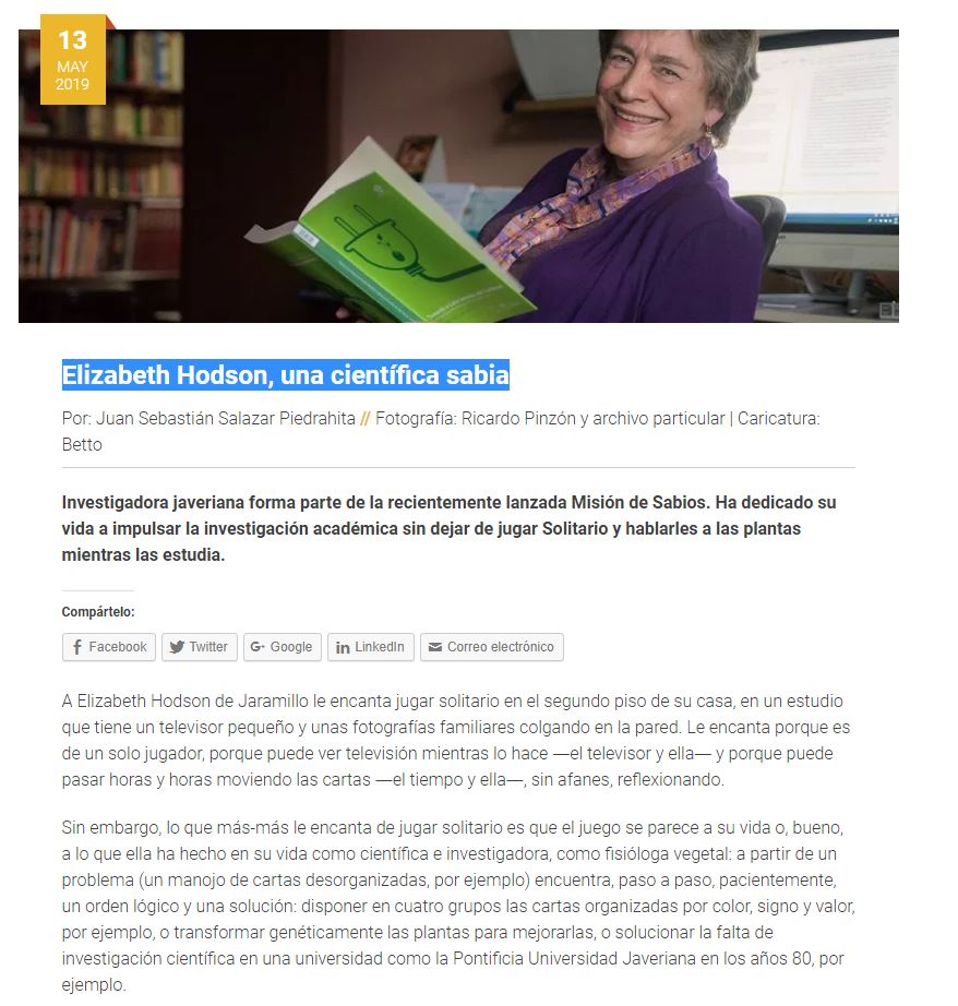 Pesquisa Javeriana: Elizabeth Hodson, una científica sabia